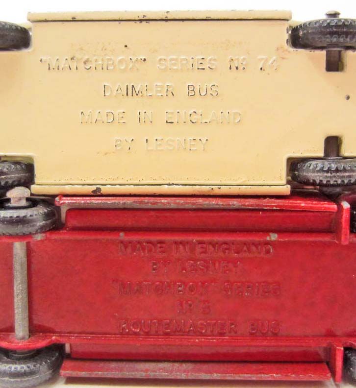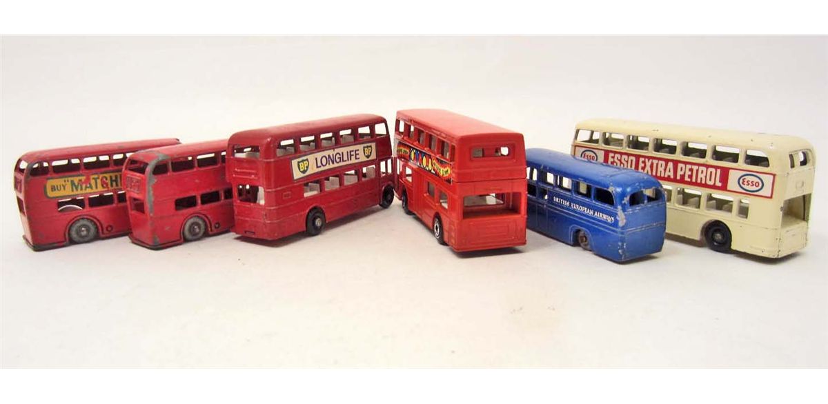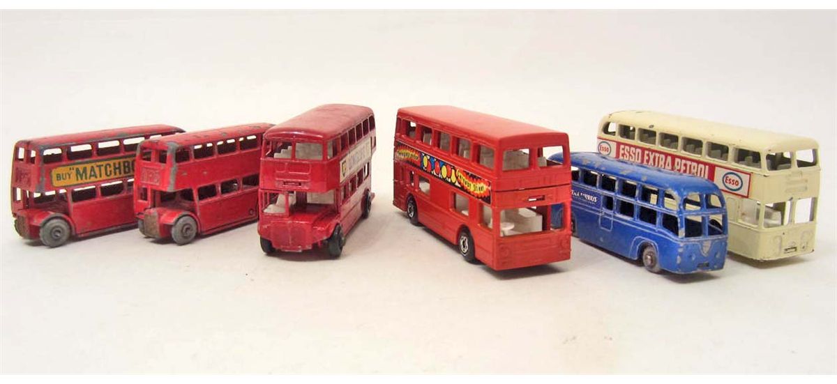 LOT OF 6 VINTAGE MATCHBOX ENGLISH BUSES - 3 WITH GREY WHEELS