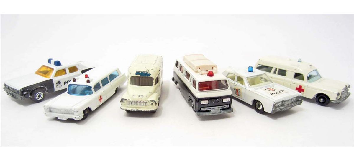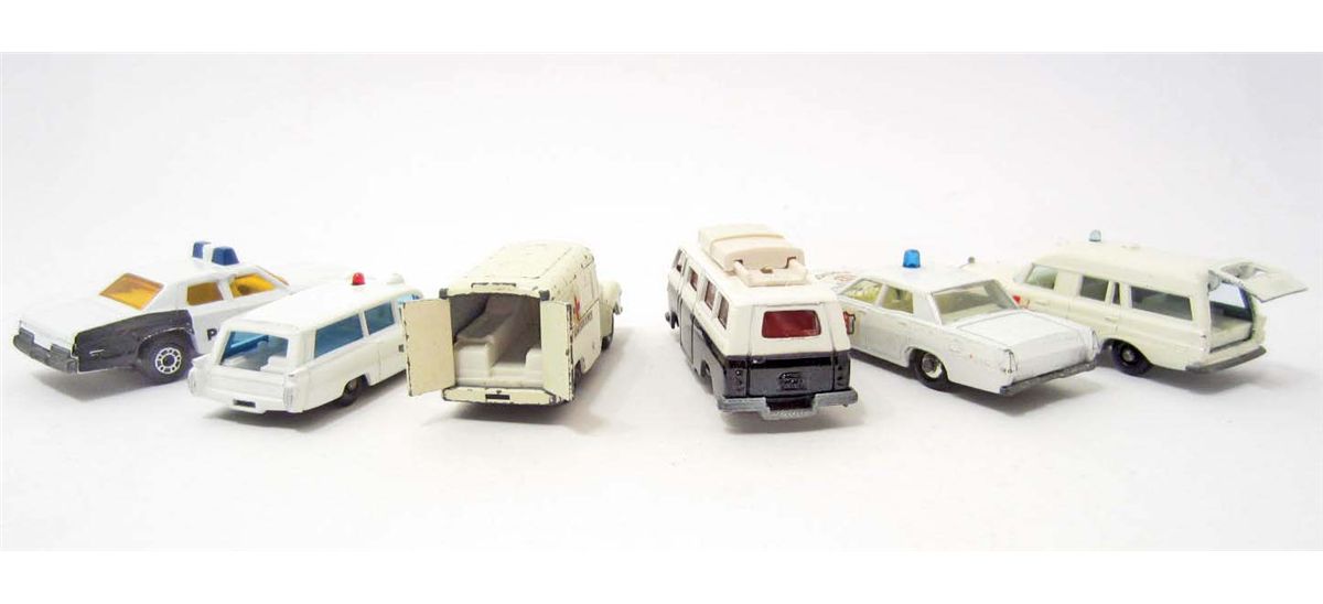 Included - Numbers 54, 55 or 73, 14, 67, 10 and a Binz ambulance. All in good condition, some showing more wear from age and play than others.