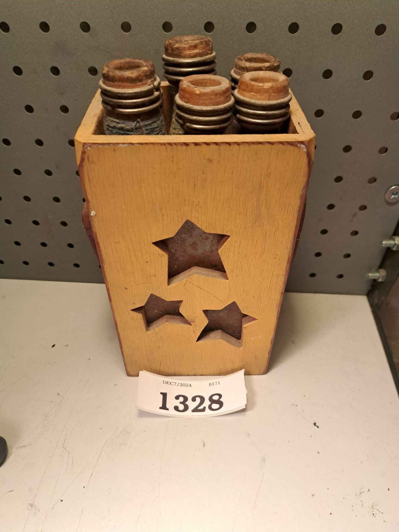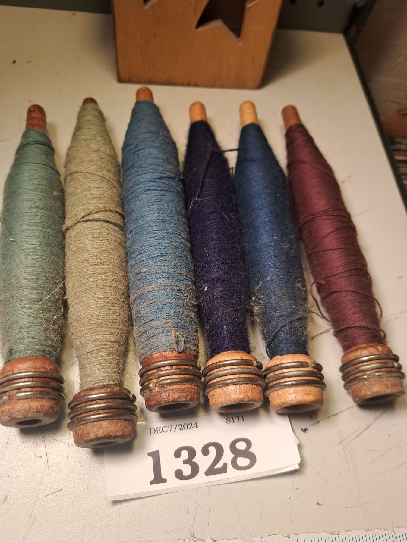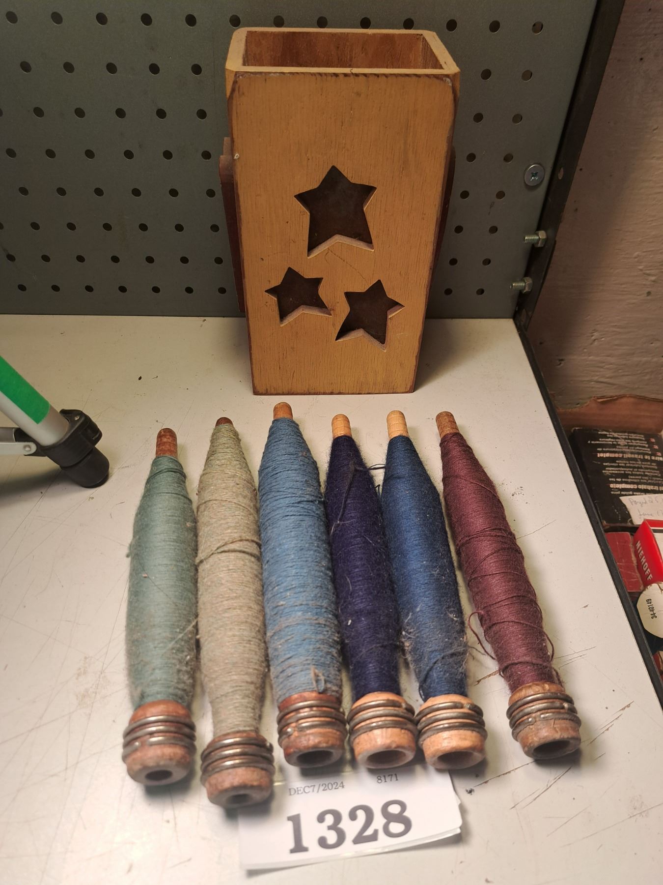 LOT OF 6 VINTAGE SEWING MACHINE SPOOLS IN DECROTIVE BOX