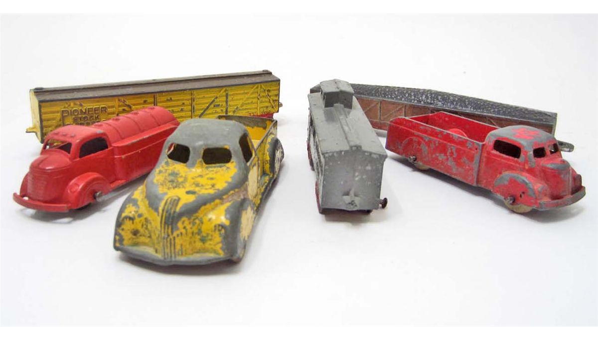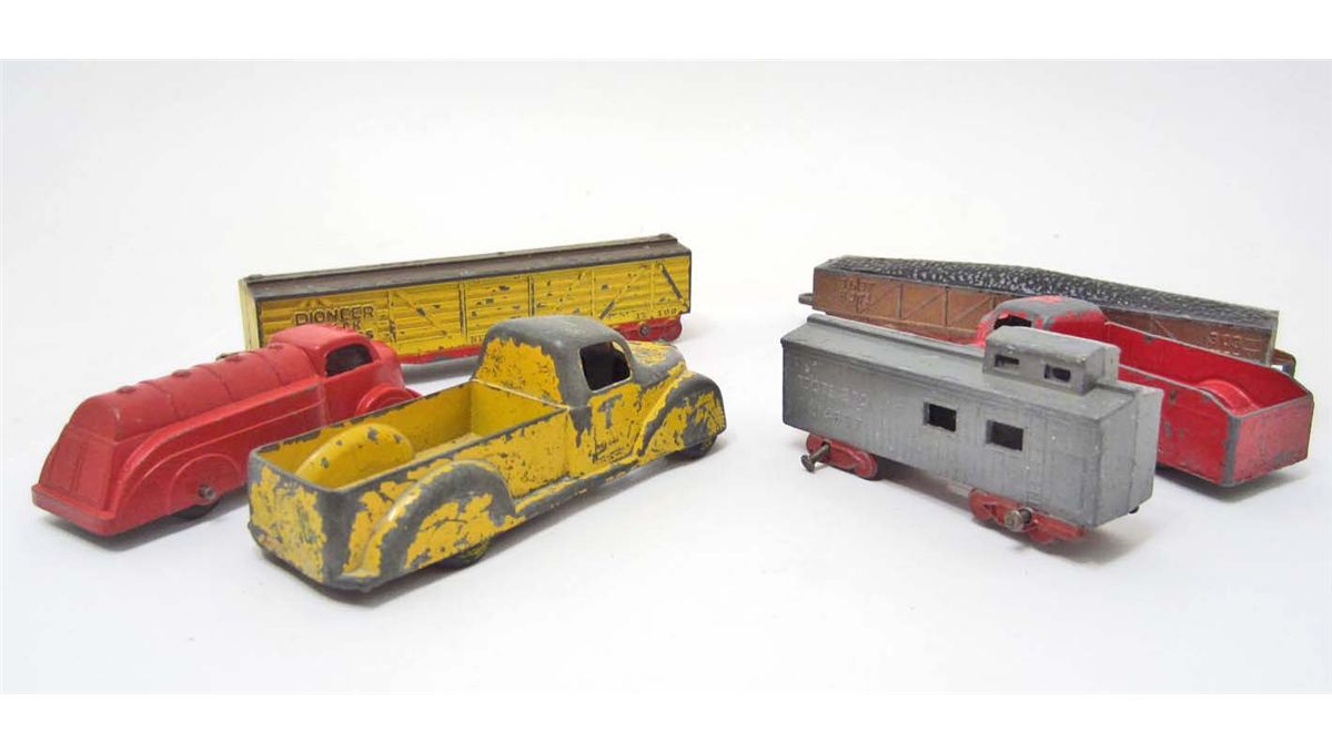 LOT OF 6 VINTAGE TOOTSIETOYS TOY CARS & TRAINS