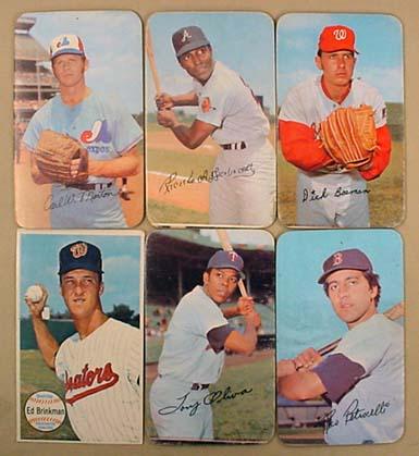 LOT OF 6 VINTAGE TOPPS SUPER AND GIANT BASEBALL CARDS - Incl. 1 1964 Topps Giants No. 27 and 4 1971 Topps Supers No. 11, 19, 28, 29 and 37.