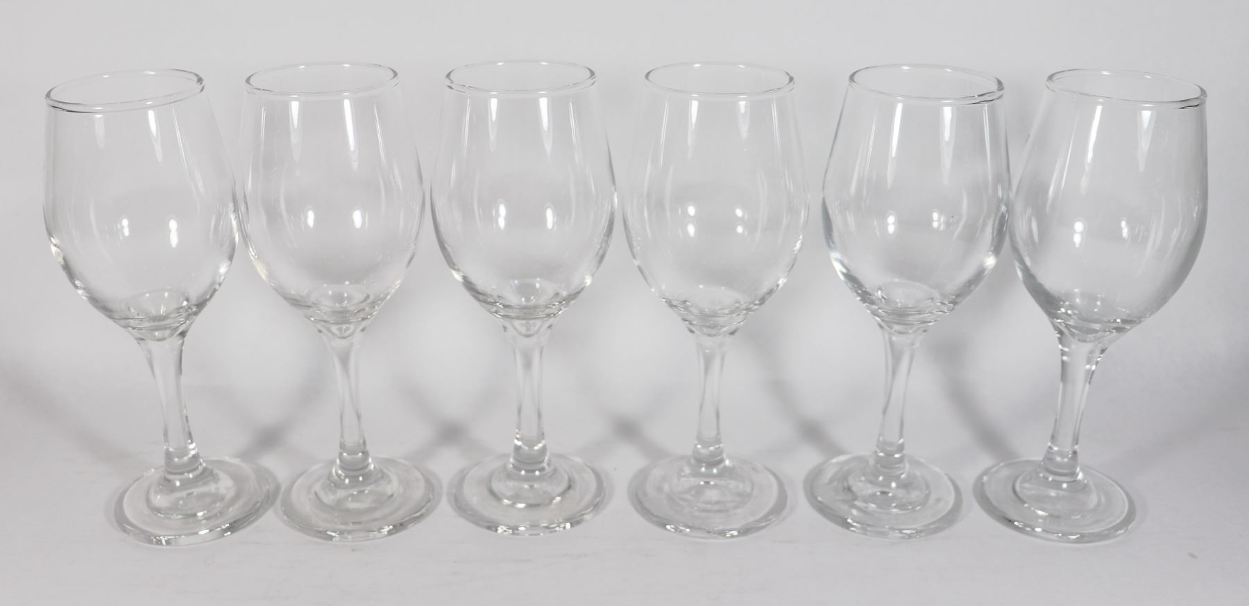 LOT OF 6 WINE GLASSES ABOUT 8" TALL