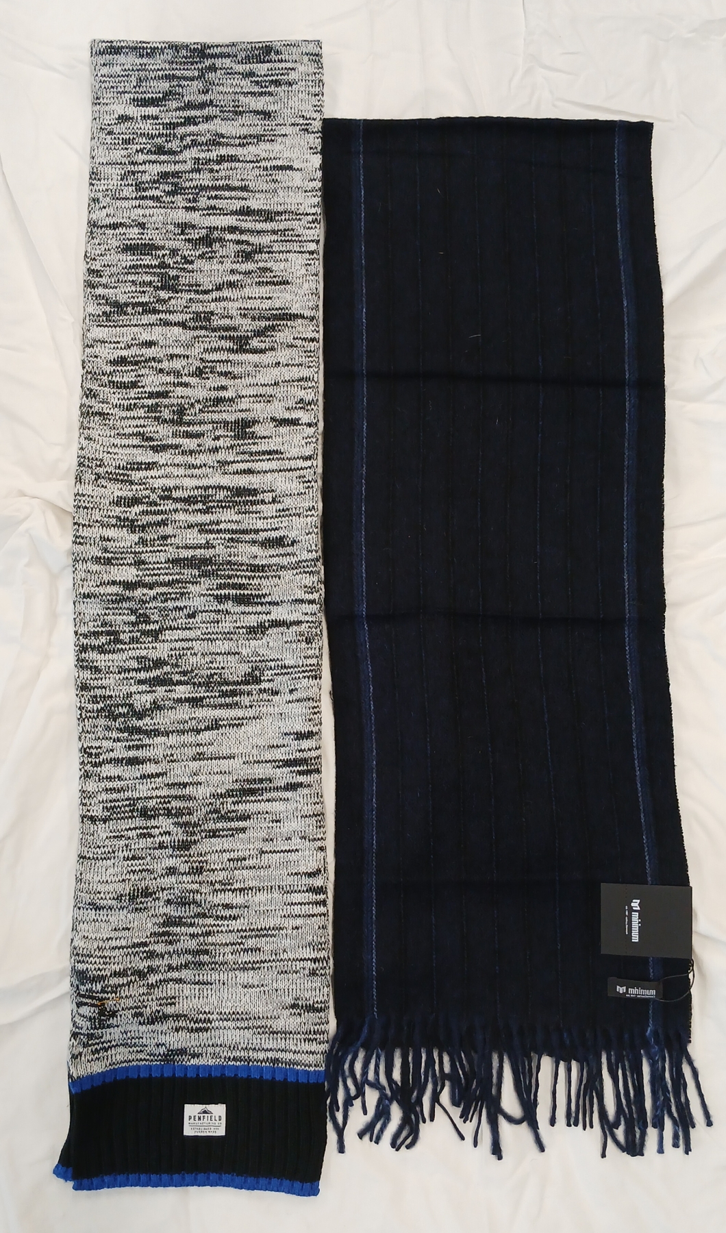 NOTE: MARKED ONE SIZE - LARGEST SCARF IS 78IN LENGTH - 1X WOOL SCARF - REST MOSTLY ACRYLIC