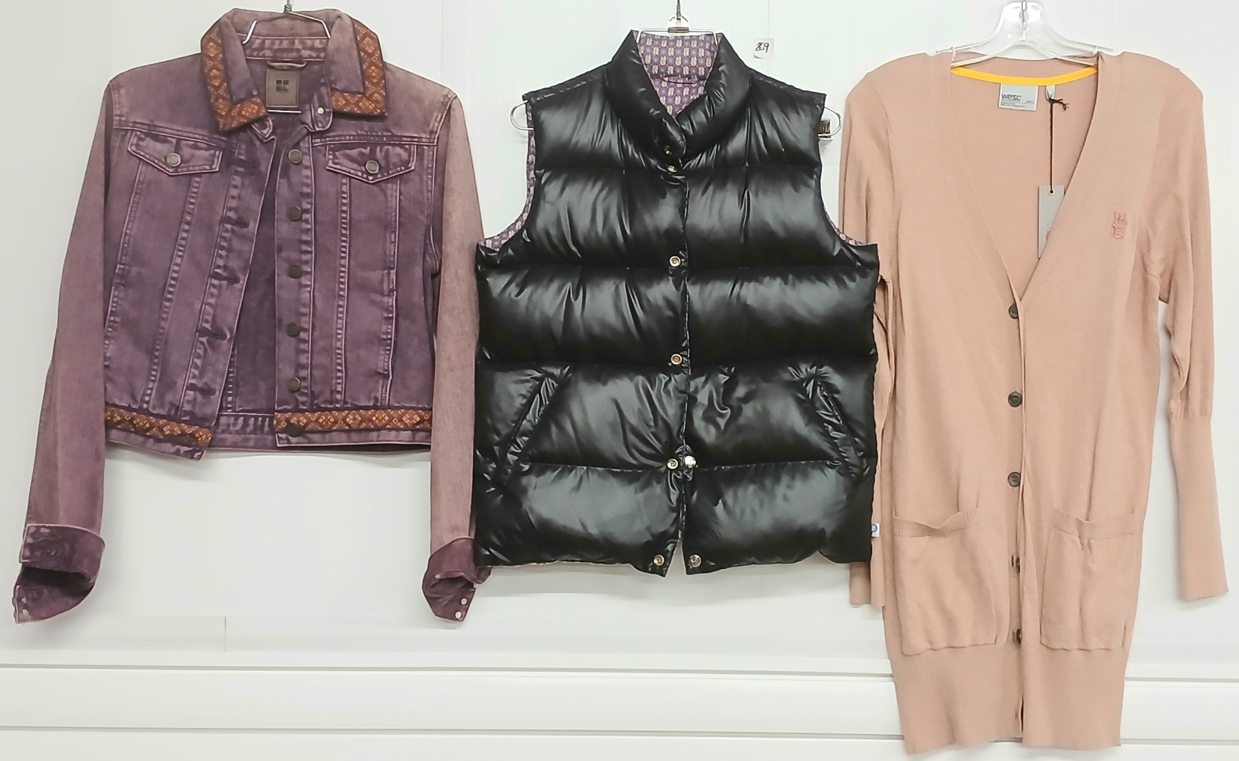 LOT OF 6 - WOMEN'S CARDIGAN, T-SHIRTS, JACKETS & VEST - MFG PENFIELD, WESC, INSIGHT, ETC