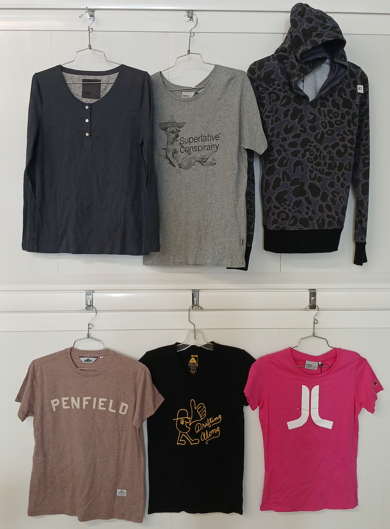 LOT OF 6 - WOMEN'S HOOIDE, T-SHIRTS & LONG SLEEVES - MFG POLER, INSIGHT, WESC, ETC