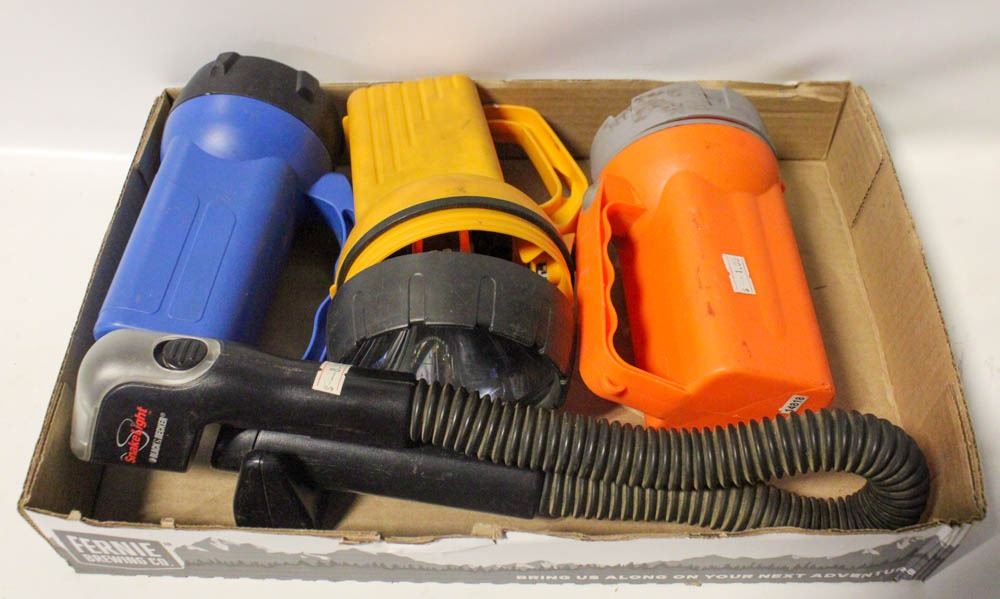 LOT OF 6V FLASHLIGHTS AND A SNAKE LIGHT