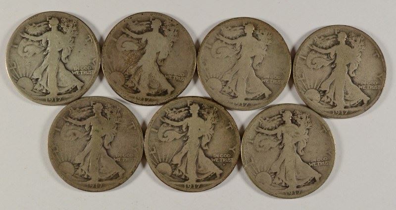 LOT OF ( 7 ) 1917 WALKING LIBERTY HALF DOLLARS, VARIOUS MINT MARKS INCLUDED
