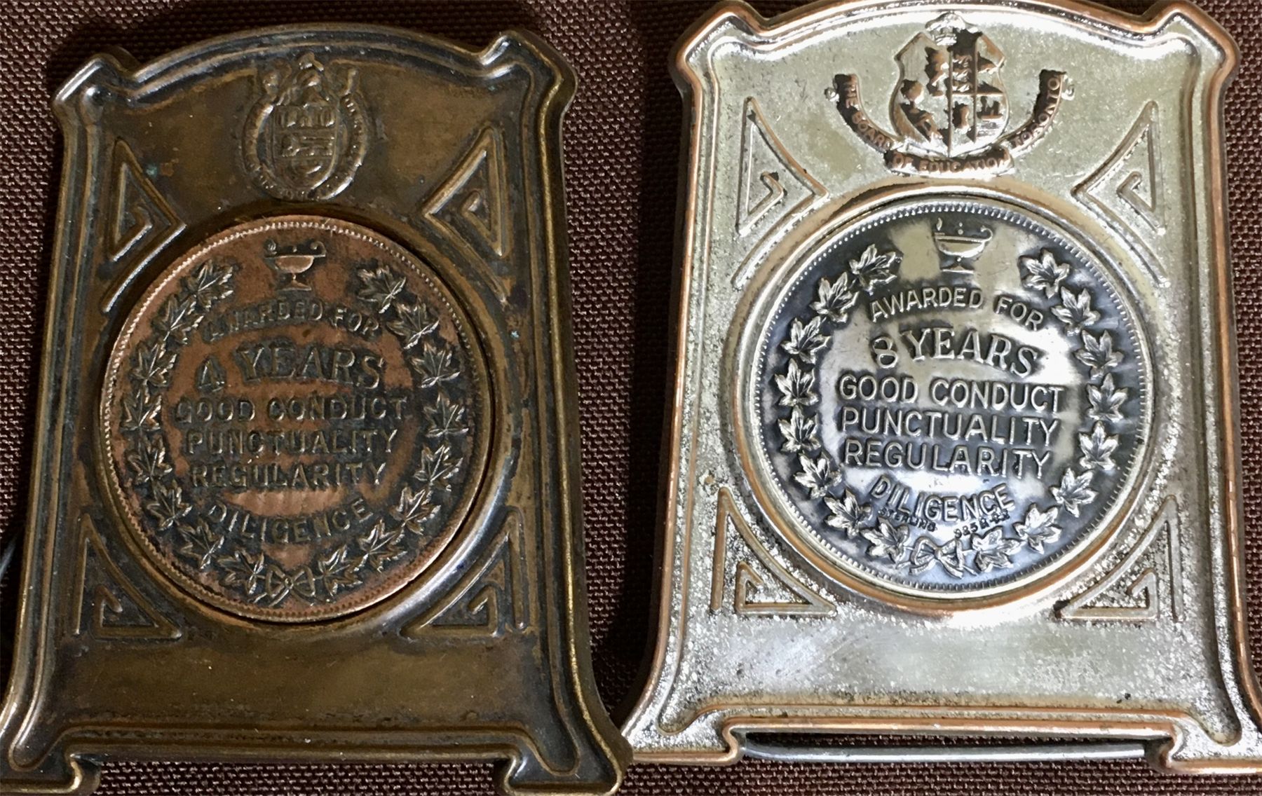 NOTE: 1930S GOOD CONDUCT BADGE, RESSURECTION HALL ID BADGE ECT