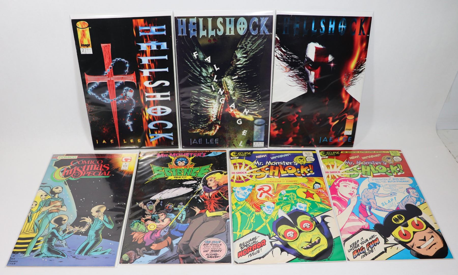 LOT OF 7 ASSORTED COMICS INCLUDES HELLSHOCK,