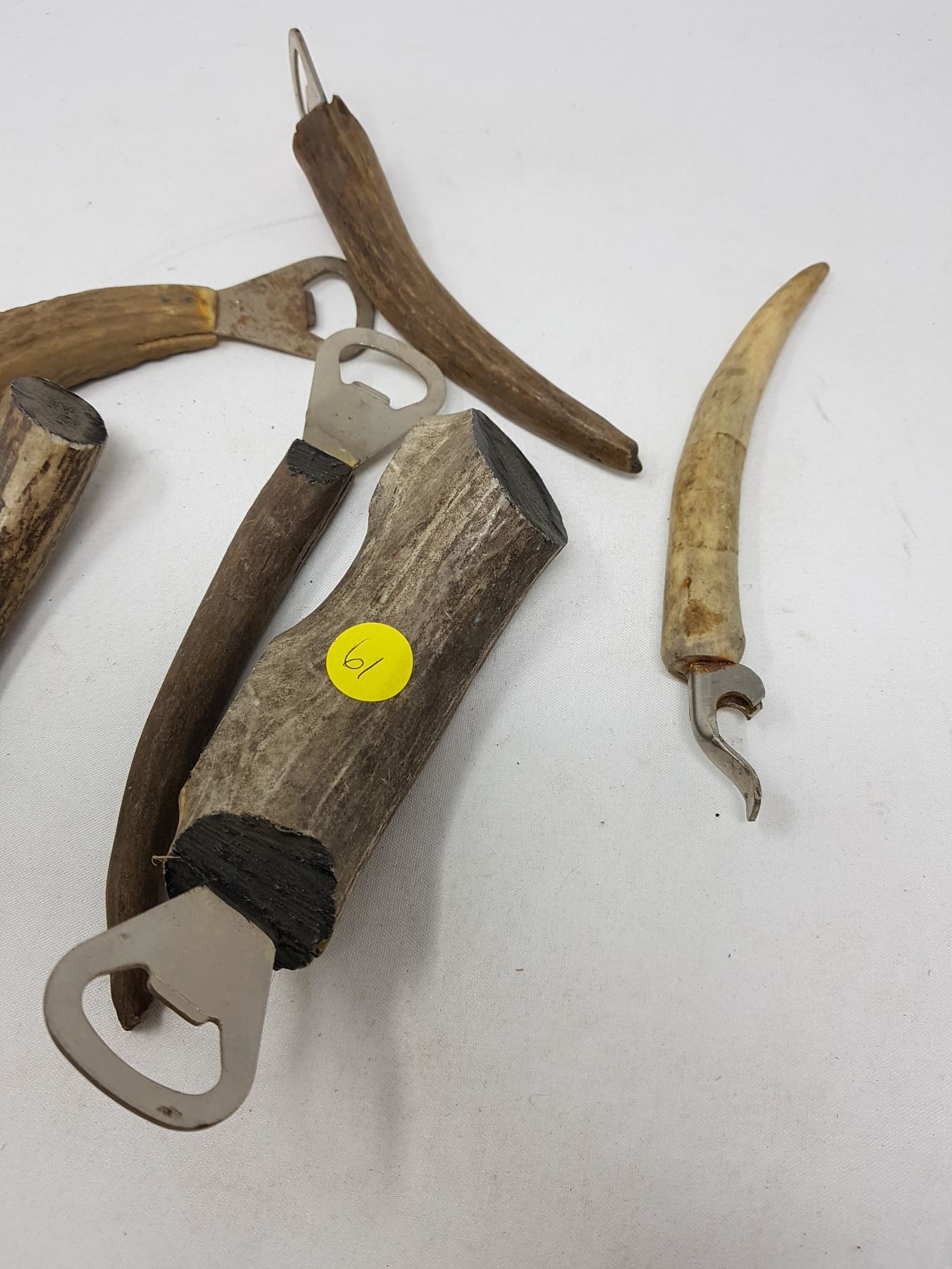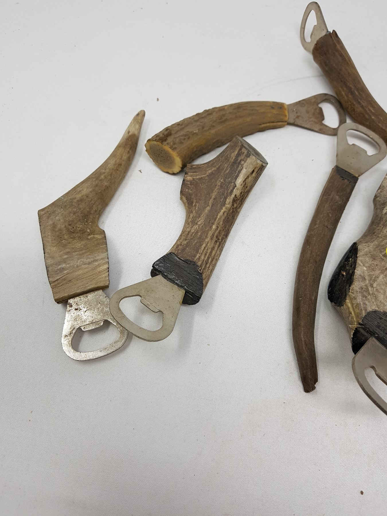 LOT OF 7 BOTTLE OPENERS MADE OF DEER HORN