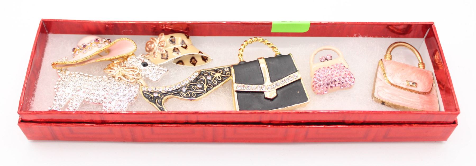LOT OF 7 BROOCHES SHOE, HATS, PURSES DOG
