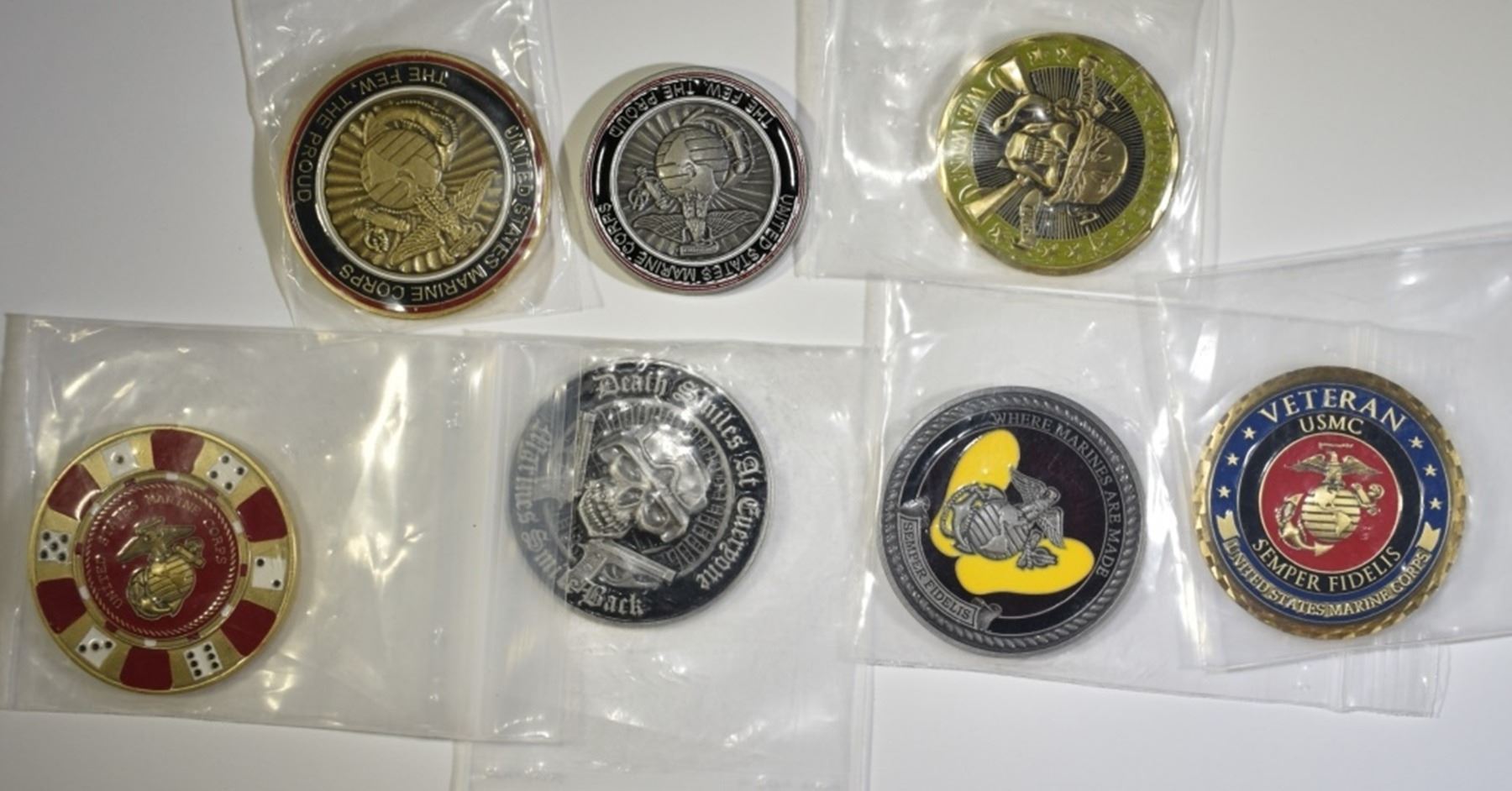 6 MARINES & 1 HEADS/TAILS. ESTIMATE $100 - $125.