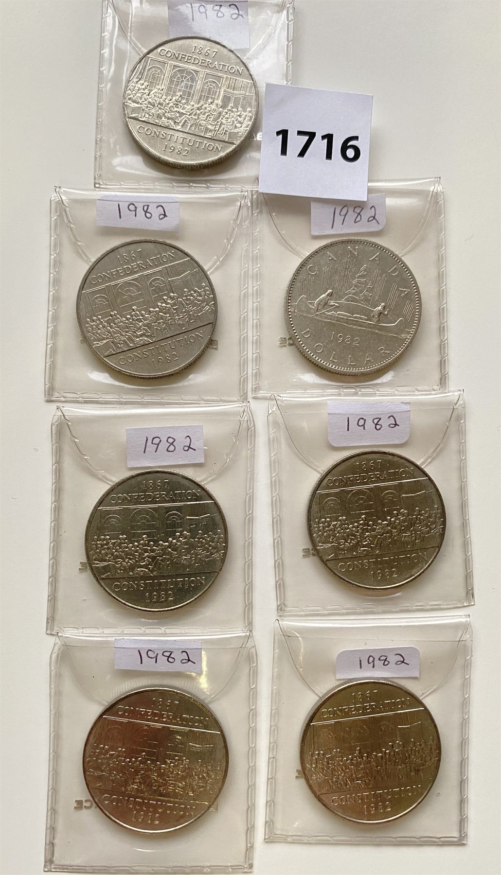 LOT OF 7 - CND SILVER DOLLARS - 1982