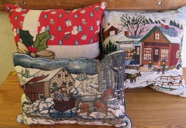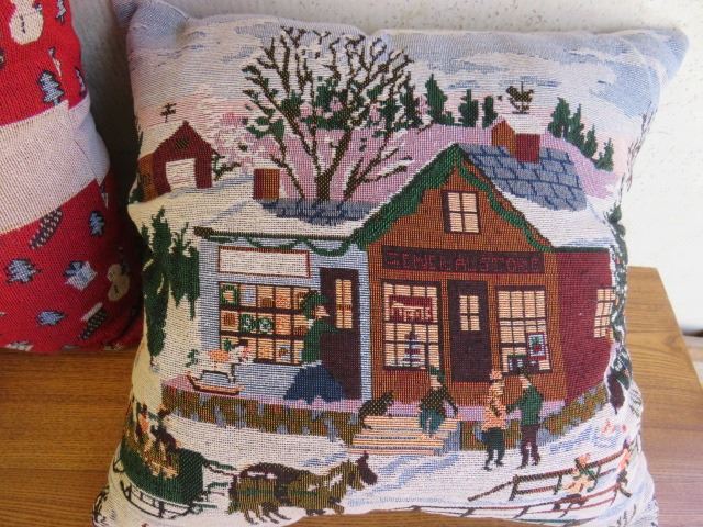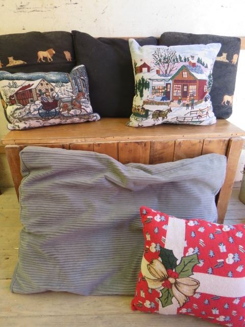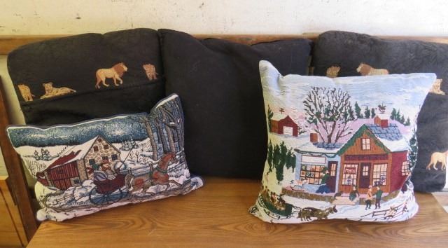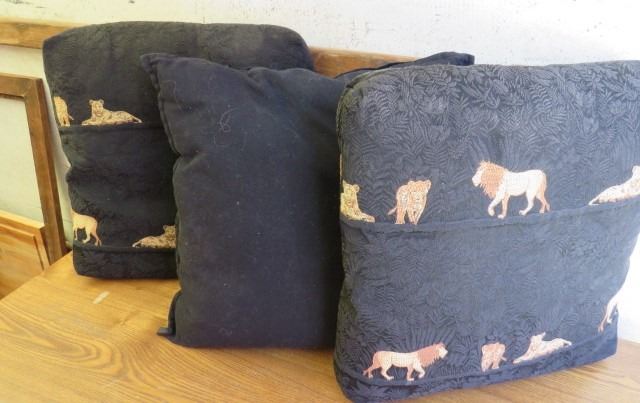 LOT OF 7 CUSHIONS (3 X CHRISTMAS THEMED) *2 X LIONS* (1 BLACK) *1 GREY*