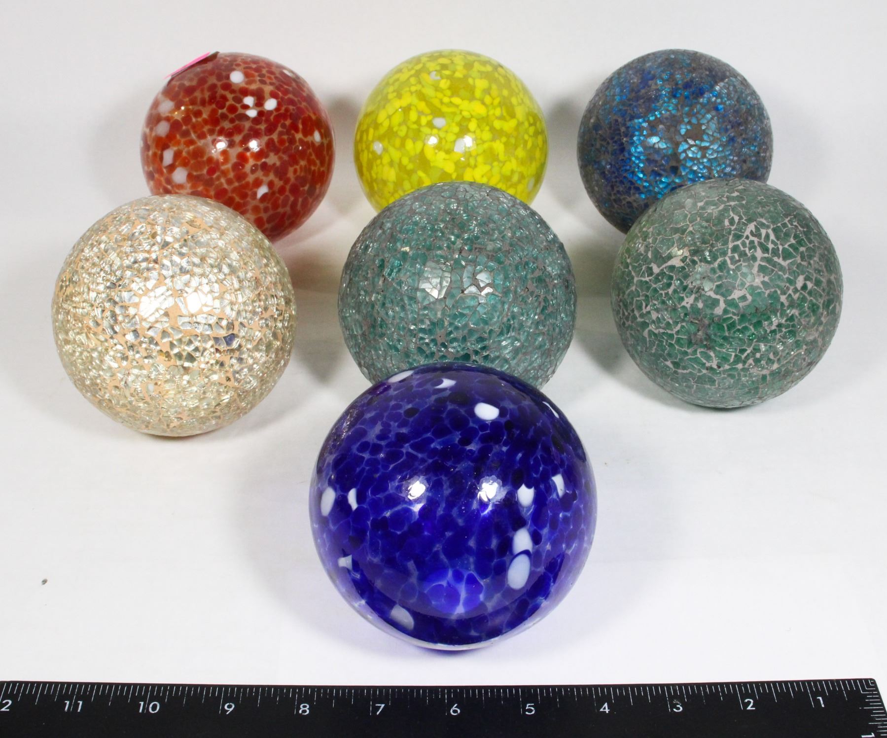 LOT OF 7 DECORATIVE GLASS BALLS