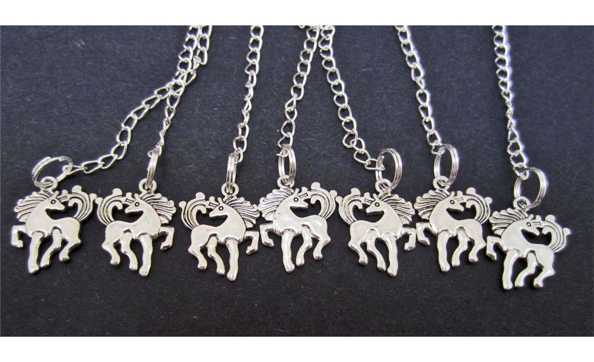 LOT OF 7 GEMSTONE PENDULUMS W/ TIBETAN HORSE PENDANTS