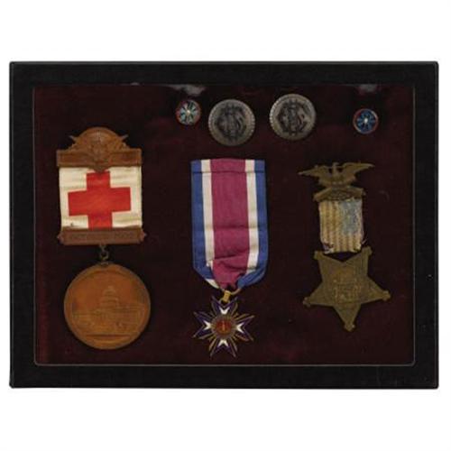<B>LOT OF SEVEN GRAND ARMY OF THE REPUBLIC VETERANS ITEMS.</B></I> Including: two GAR medals; a Military Order of the Loyal Legion enameled medal; two silk ribbon rosettes; and, two enameled cuff buttons made from United States quarter dollars (1854 & 1855). Nice lot.<BR><B><BR>Provenance: </B></I>Al. Emmett Fostell Collection.<B> <BR><BR>Condition:</B></I> Very good.<BR><BR><b>Shipping:</b> Miscellaneous Collectibles, Smal (<a target="_blank" href="http://www.heritageauctions.com/common/shipping.php">view shipping information</a>)