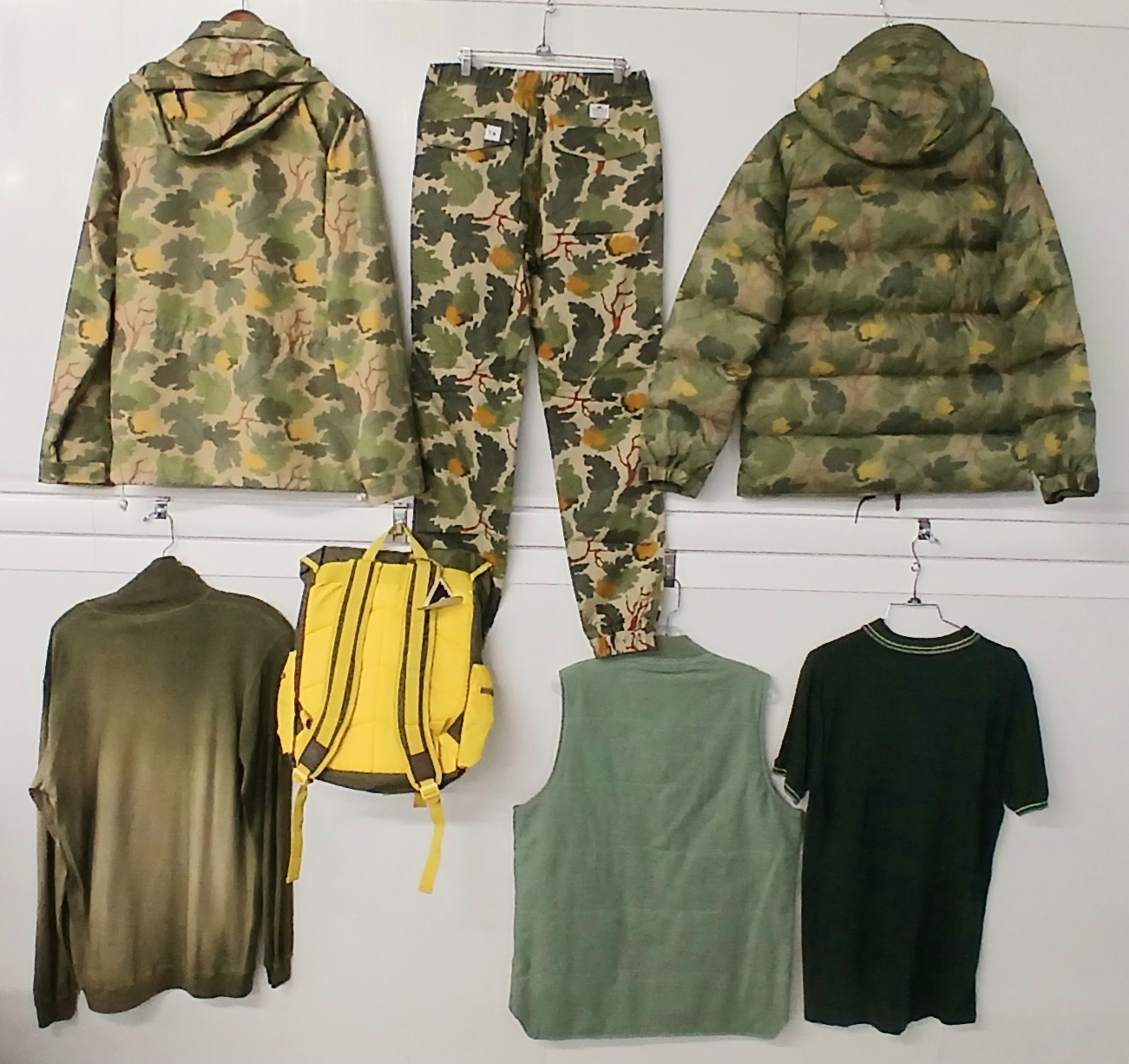 LOT OF 7 - MEN'S MEDIUM JACKETS, SHIRTS, PANTS, VEST & PACK - FT PENFIELD, POLER, ETC