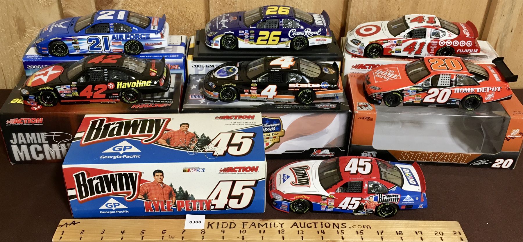 LOT OF 7 - NASCAR 1:24 SCALE DIECASTS - TONY STEWART, KYLE PETTY, KEN SCRADER ETC.