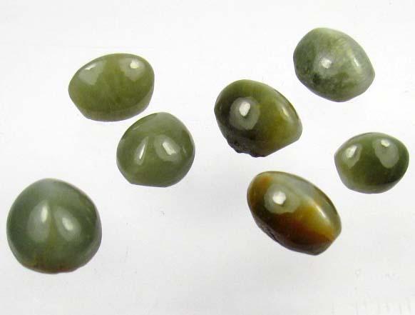 LOT OF 7 NATURAL APATITE CATS EYE GEMSTONES - 53.1 CT.