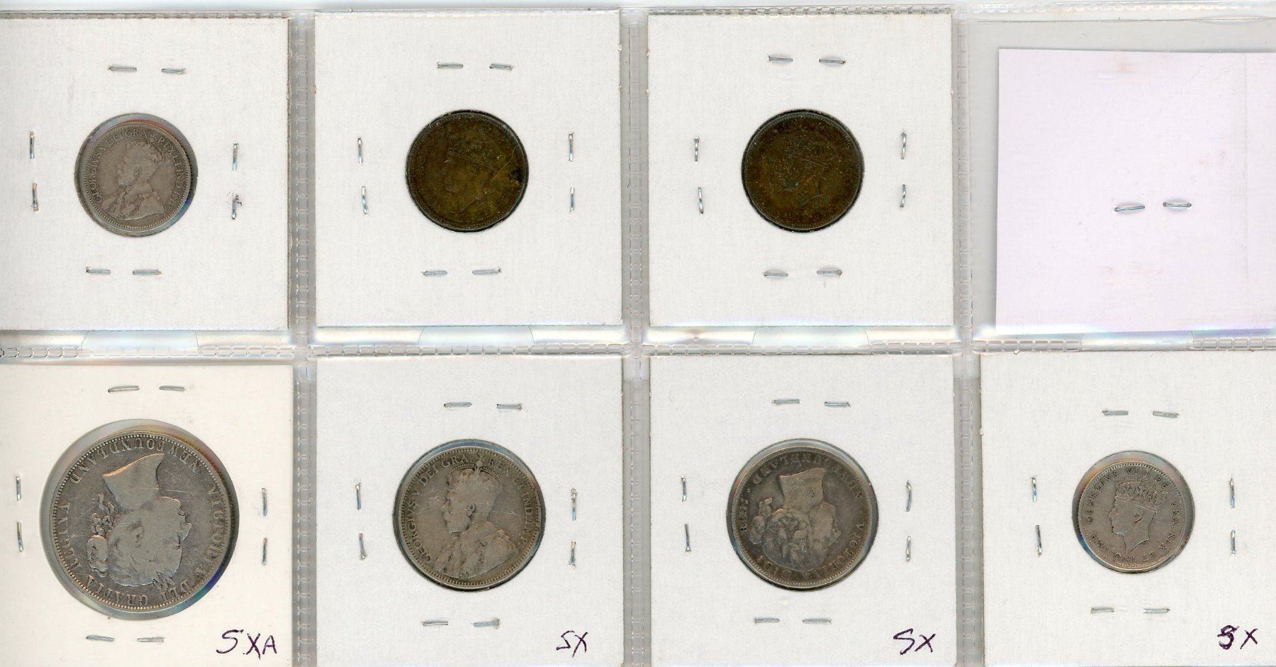 LOT OF 7 NEWFOUNDLAND COINS 1941C 1C AU-50, 1942 1C EF-40, 1917C 10C, 1944C 10C, 1912 20C, 1900 20C VF-20, 1900 50C VG-8