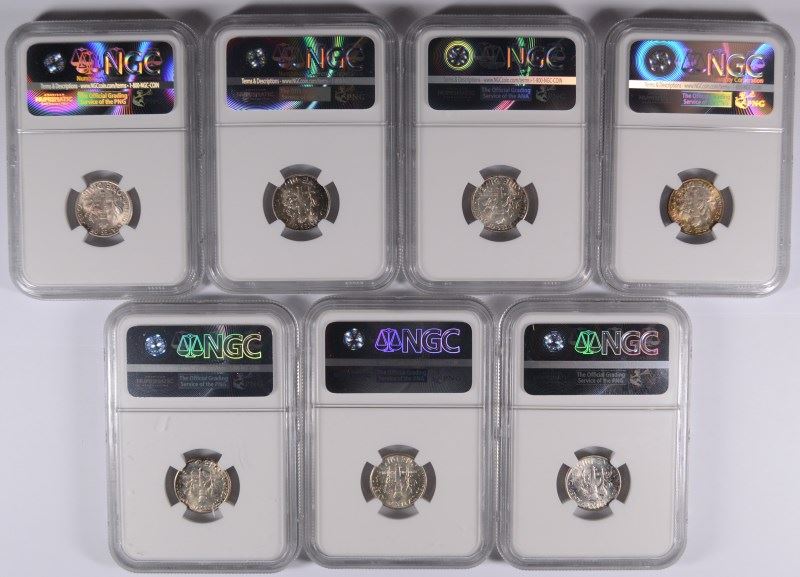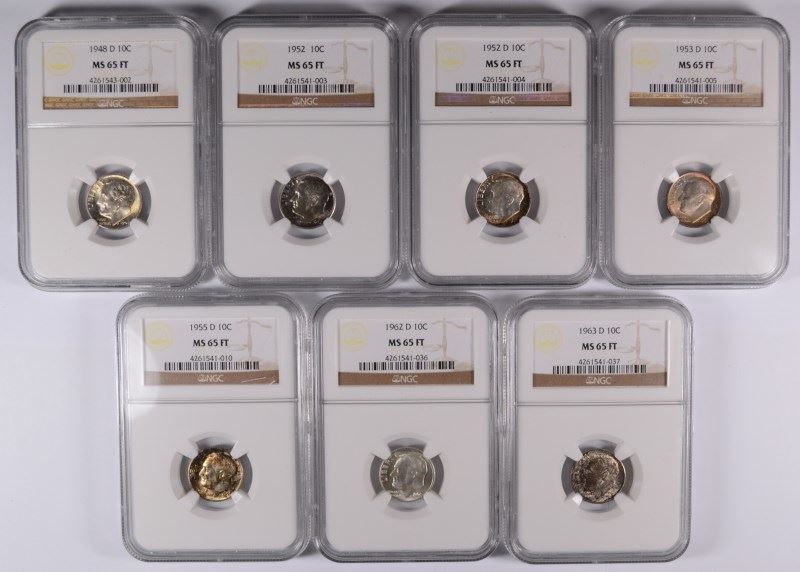 LOT OF (7) ROOSEVELT DIMES NGC MS-65 FT: 48-D, 52, 52-D, 53-D, 55-D, 62-D, 63-D