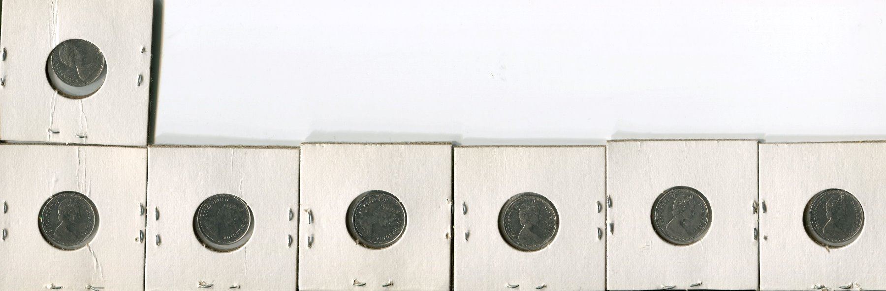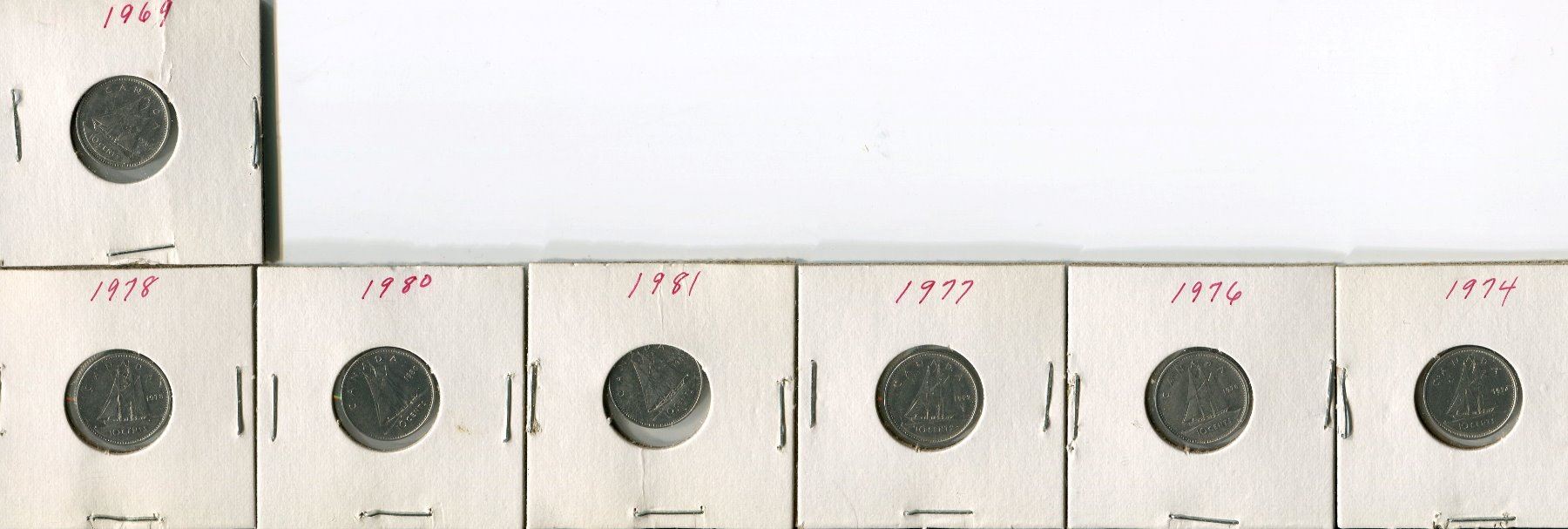 LOT OF 7 -TEN CENT COINS (CANADA) *1969, 74, 76, 77, 81, 80, 78*