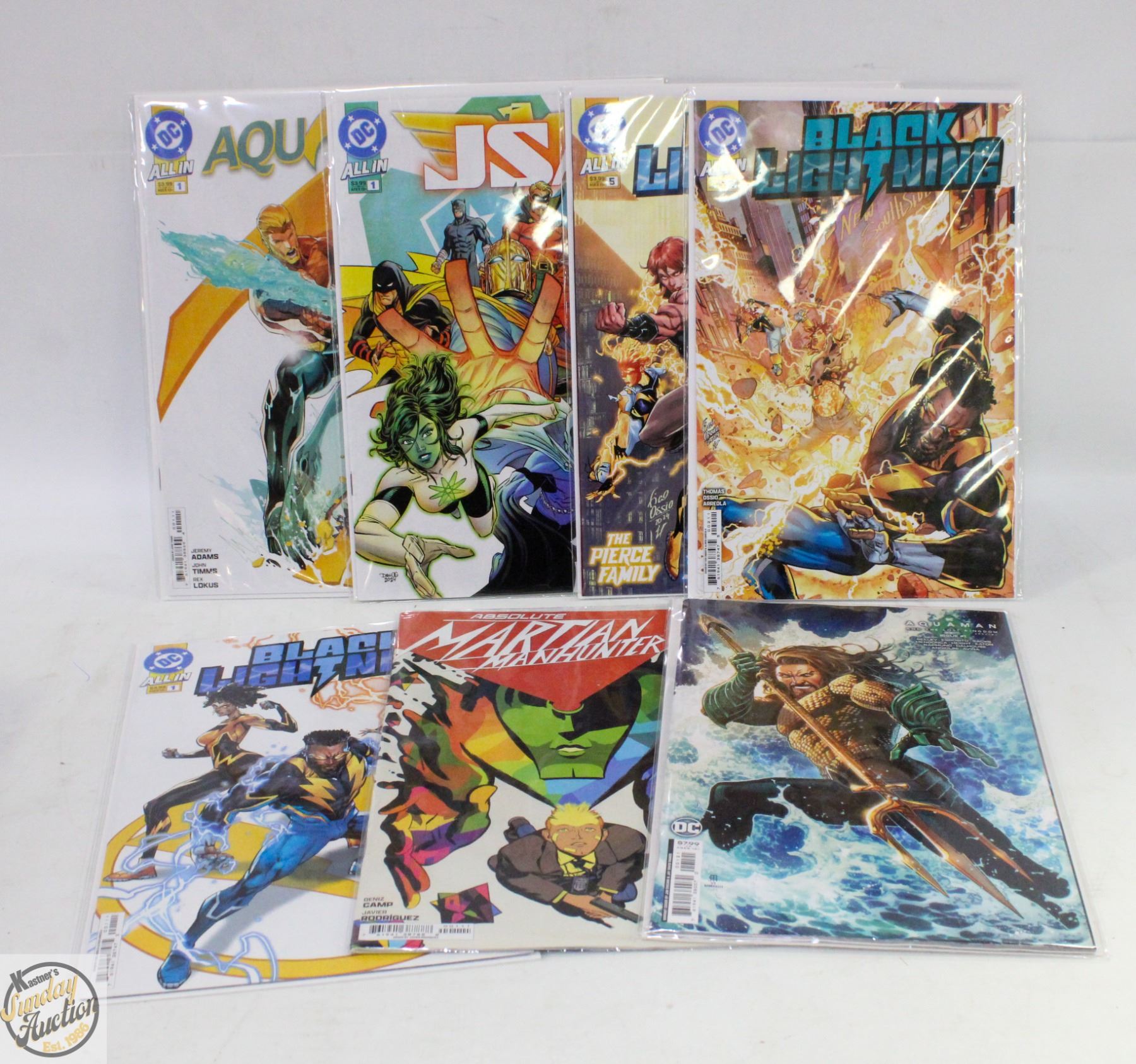 AQUAMAN #1, JSA #1, BLACK LIGHTNING #5, BLACK LIGHTNING #2, BLACK LIGHTING #1 FIRST PRINTW/DC AQUAMAN AND THE LOST KINGDOM SPECIAL #1, ABSOLUTE MARTIAN MANHUNTER #1 (LOOSE TAG) **ALL ITEMS MUST BE REMOVED BY 5PM SATURDAY, AUGUST 16TH 2025. ALL REMAINING ITEMS WILL BE SUBJECT TO A $6.00 PER DAY STORAGE CHARGE. ANY ITEMS REMAINING AFTER MONDAY, SEPTEMBER 1ST 2025 WILL BE CONSIDERED FORFEITED. NO REFUNDS WILL BE ISSUED FOR FORFEITED ITEMS. TO SCHEDULE A PICK UP APPOINTMENT CLICK HERE