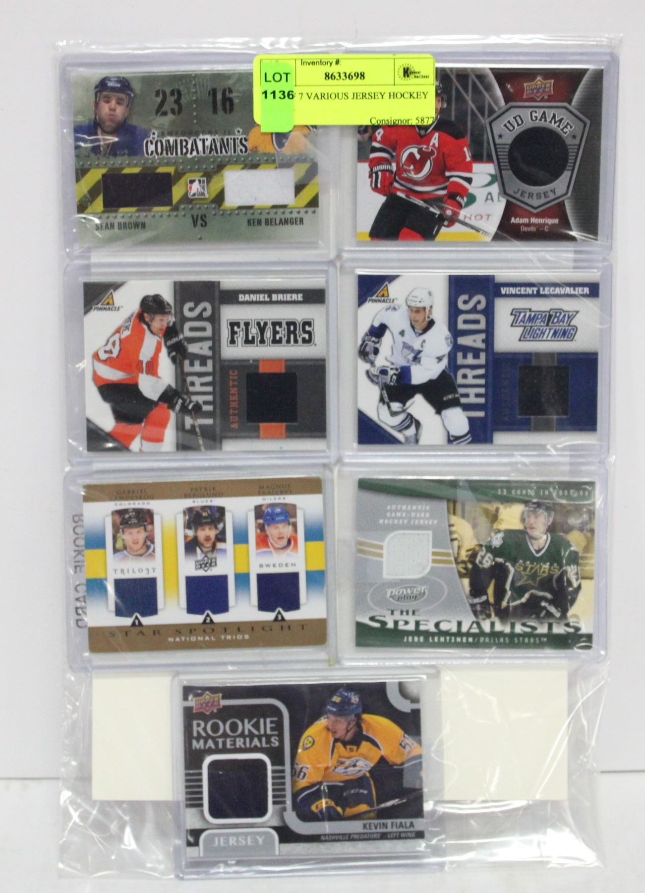 LOT OF 7 VARIOUS JERSEY HOCKEY CARDS
