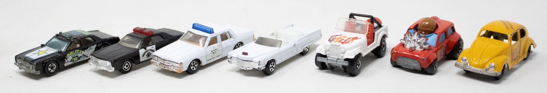 LOT OF 7 VINTAGE DIECAST CARS DUKES OF HAZARD ETC