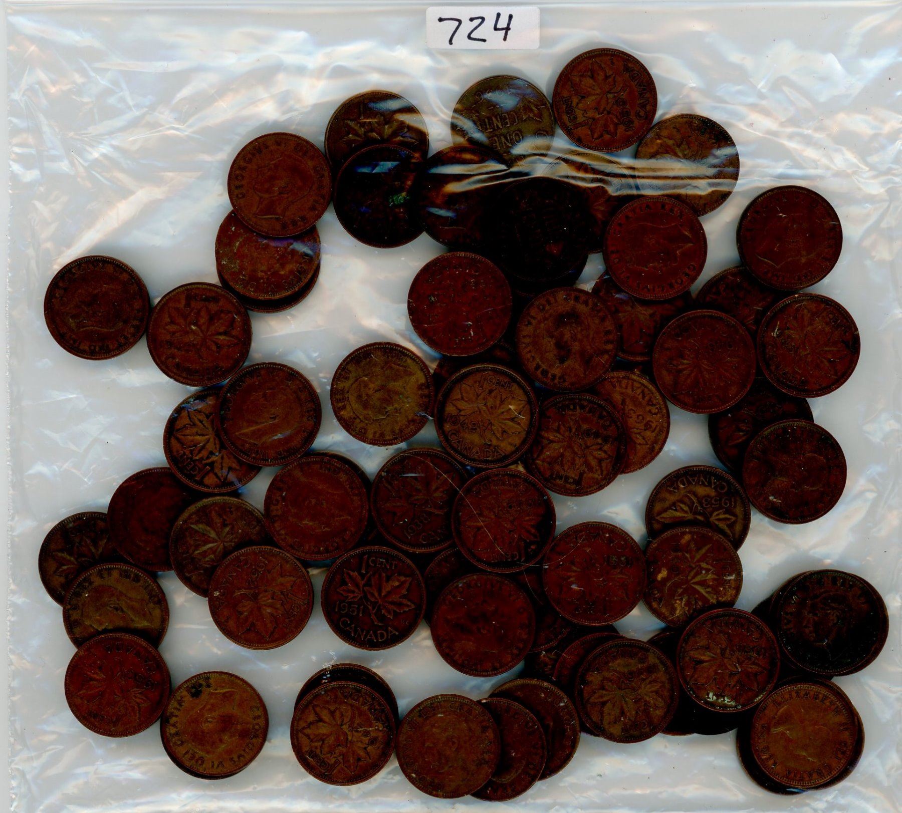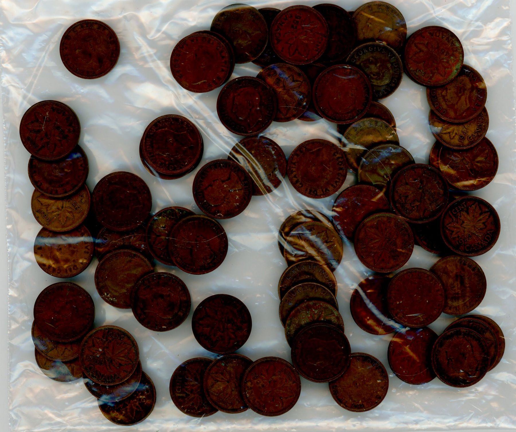 LOT OF 74-ONE CENT COINS (VARIOUS DATES BETWEEN 1930-1950'S)
