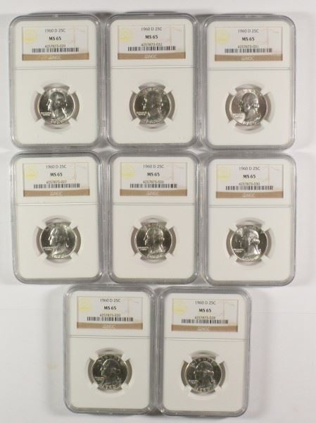 LOT OF ( 8 ) 1960-D WASHINGTON QUARTERS, NGC MS-65