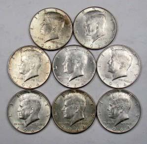 LOT OF 8 1964 KENNEDY HALF DOLLARS