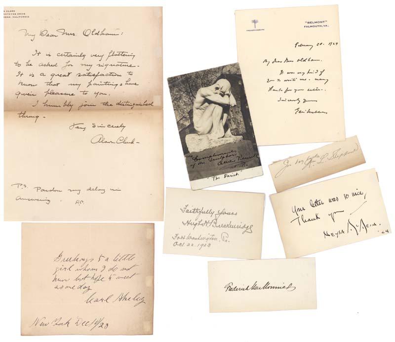 Carl Akeley, Hugh H. Breckinridge (1870-1937),Alson Clark (1876 - 1949), Frederick MacMonnies (1863 –1937), Neysa McMein (1888-1949), Gari Melchers (1860-1932), Attillio Piccirilli (1866 - 1945), William L. Sheppard. All generally fine or better.