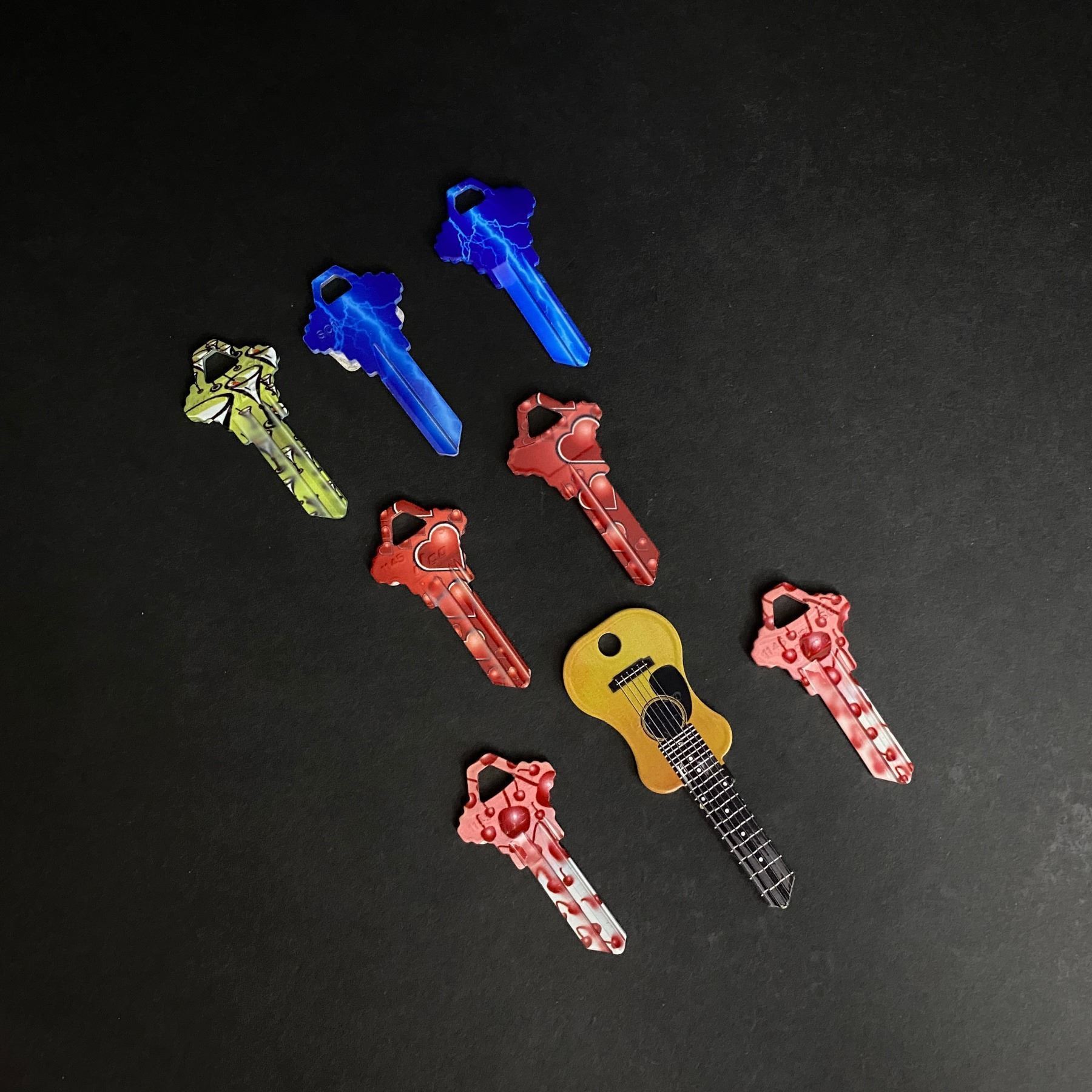 LOT OF 8 BRAND NEW UNCUT KEYS INCLUDING GUITAR