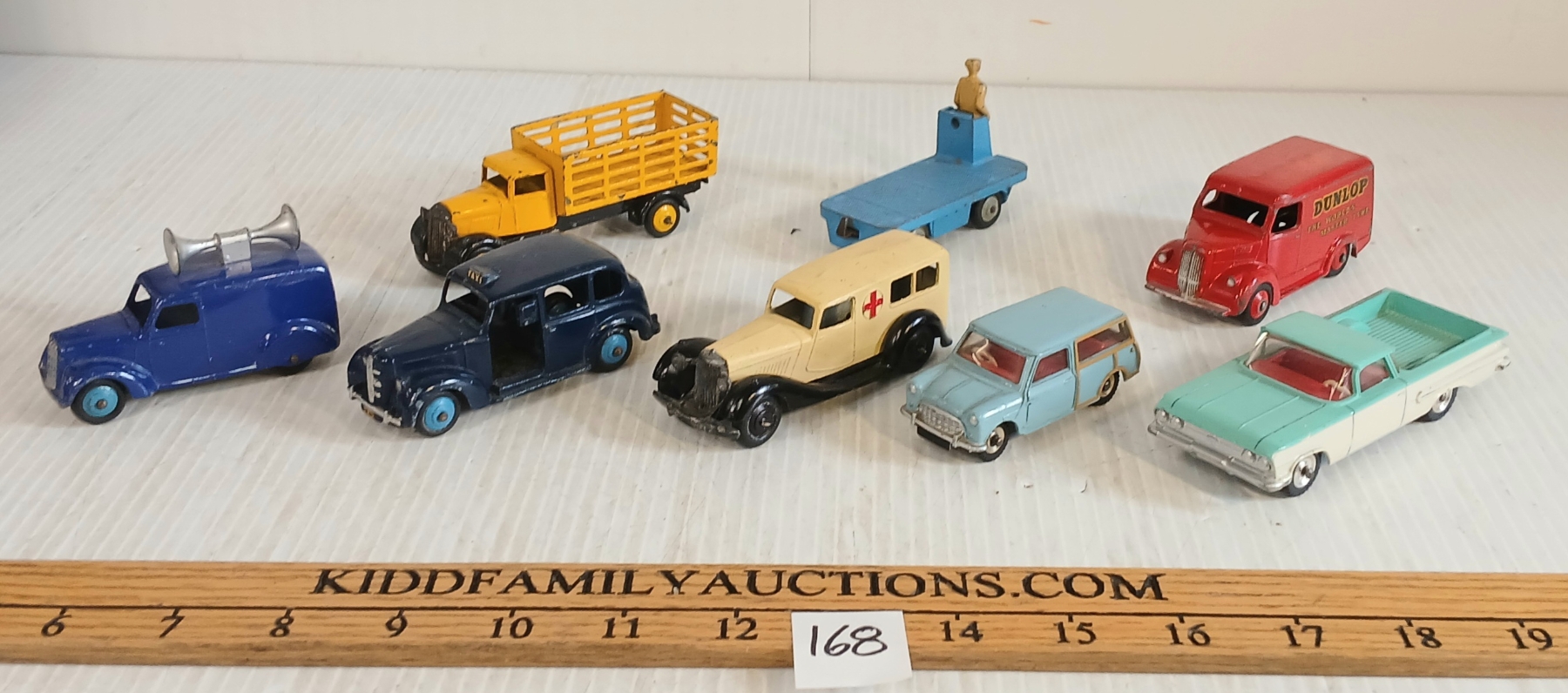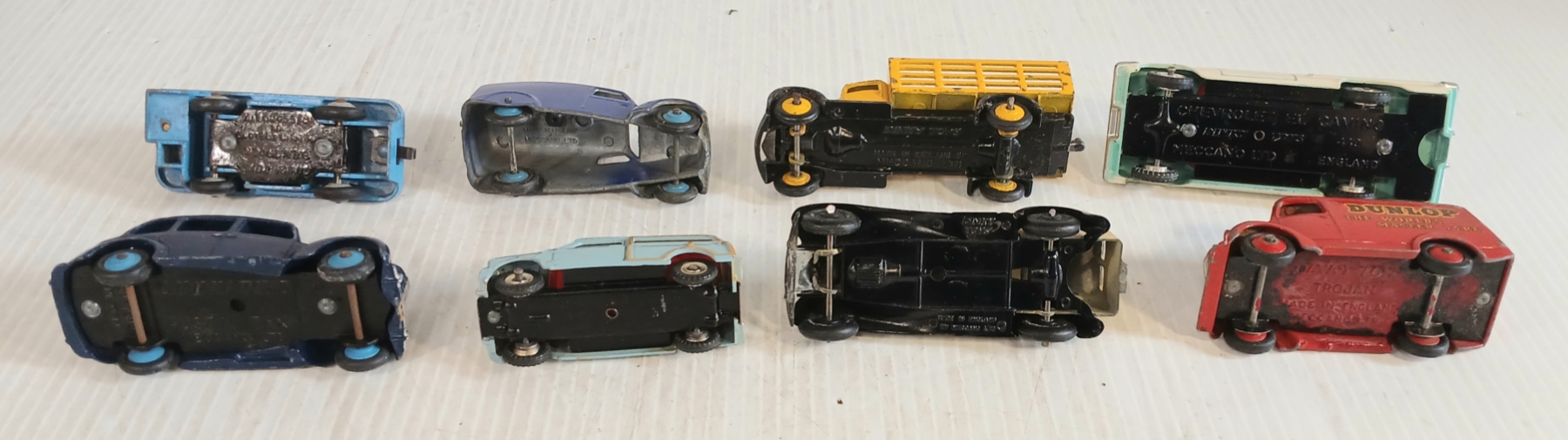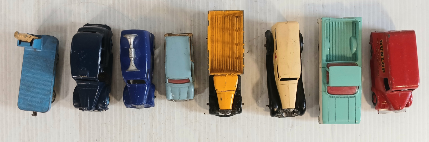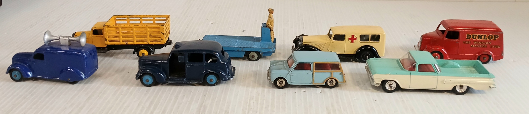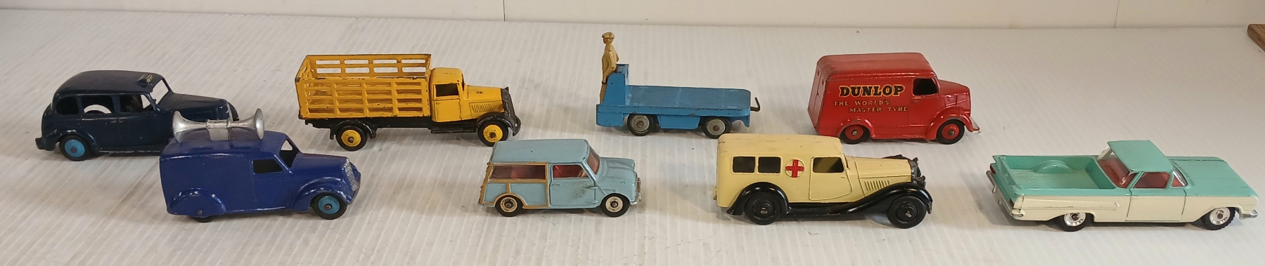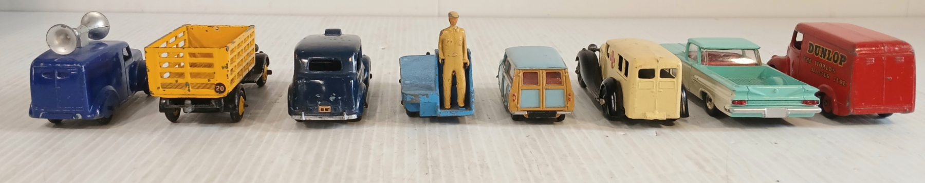 LOT OF 8 - DINKY TOYS DIECAST CARS - CHEVY EL CAMINO, DUNLLOP TRUCK, AMBULANCE, ETC