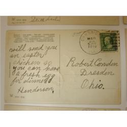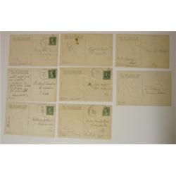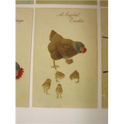 LOT OF 8 EASTER POSTCARDS FEATURING CHICKENS. All are made by Paul Finkenrath, Berlin and are Series 8718. All are relief and gilt decorated. Feature PFB crossed compass logo on reverse. Three are postmarked 1909 and two are postmarked 1910. Three have no postmark.