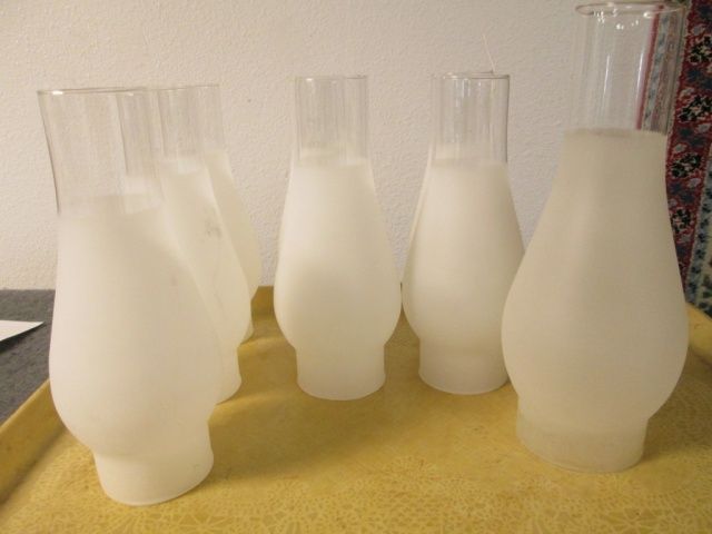 LOT OF 8 FROSTED & CLEAR OIL LAMP CHIMNEYS