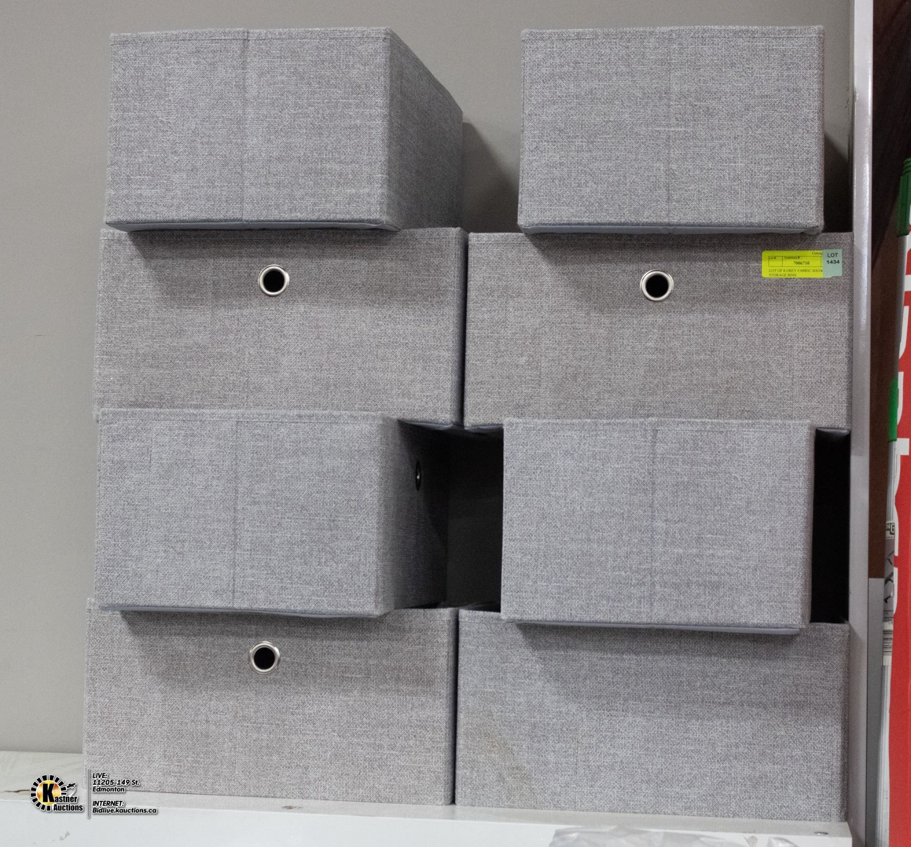 LOT OF 8 GREY FABRIC SHOWHOME STORAGE BINS
