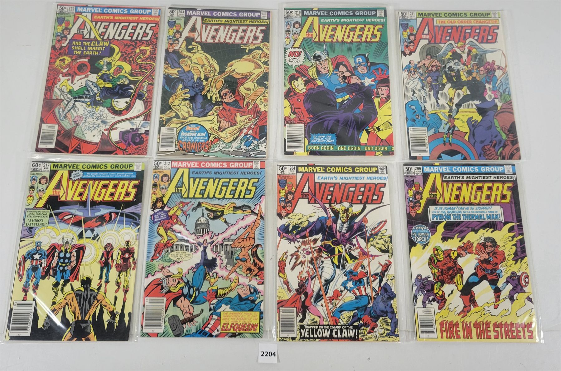 LOT OF 8 - MARVEL COMICS - THE AVENGERS #203-206, 211, 212, 217, & 218