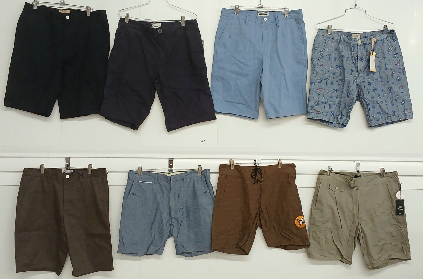 LOT OF 8 - MEN'S SHORTS - MFG CLASSIFIED, BRIXTON, PENFIELD, DEUS EX MACHINA, ETC