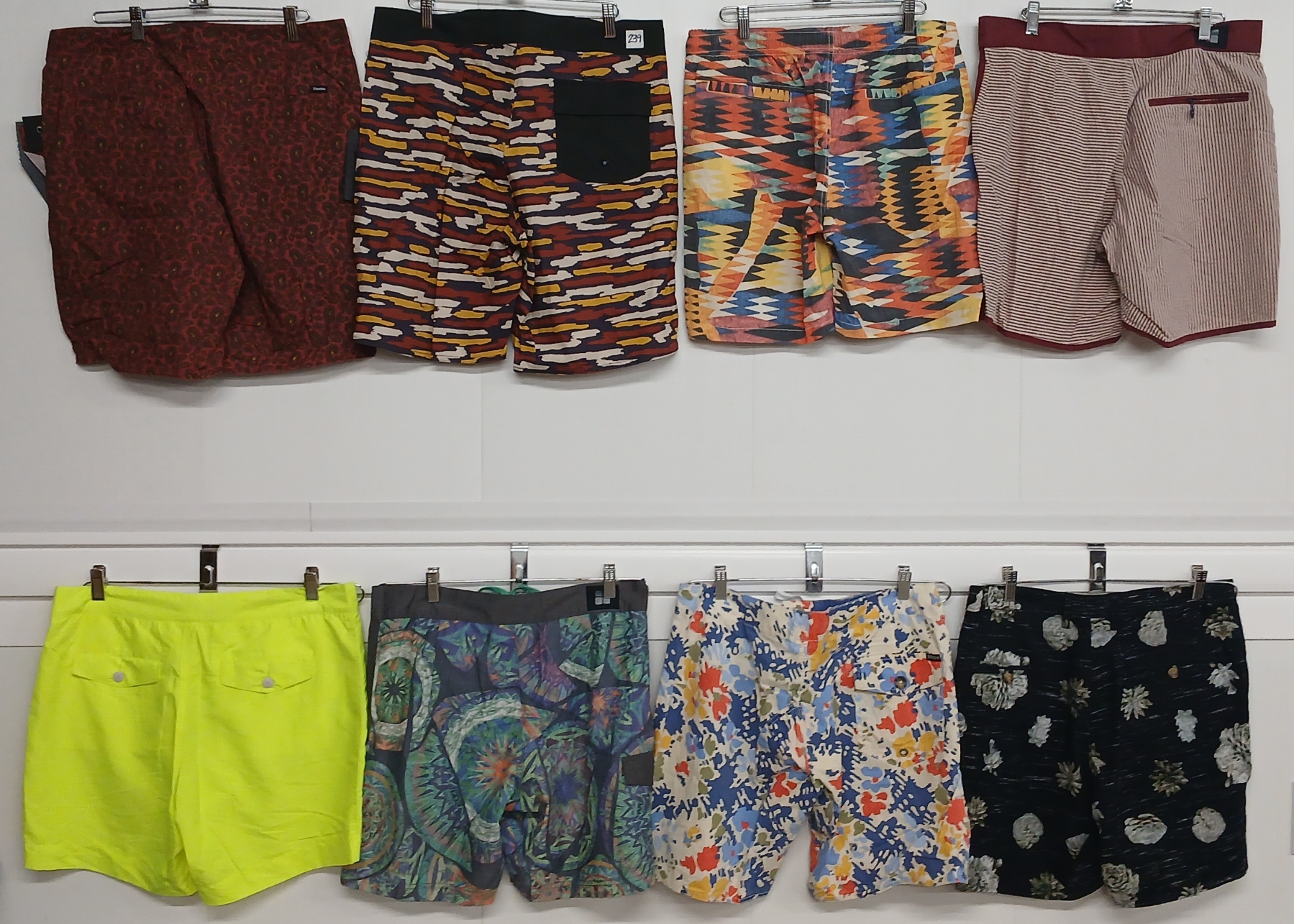 LOT OF 8 - MEN'S SWIM SHORTS - MFG BRIXTON, INSIGHT, DEUS EX MACHINA, LIFETIME, ETC