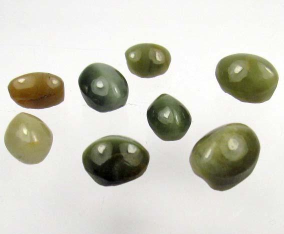 LOT OF 8 NATURAL APATITE CATS EYE GEMSTONES - 46.9 CT.