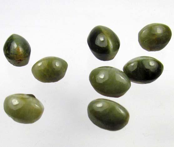 LOT OF 8 NATURAL APATITE CATS EYE GEMSTONES - 48.5 CT.