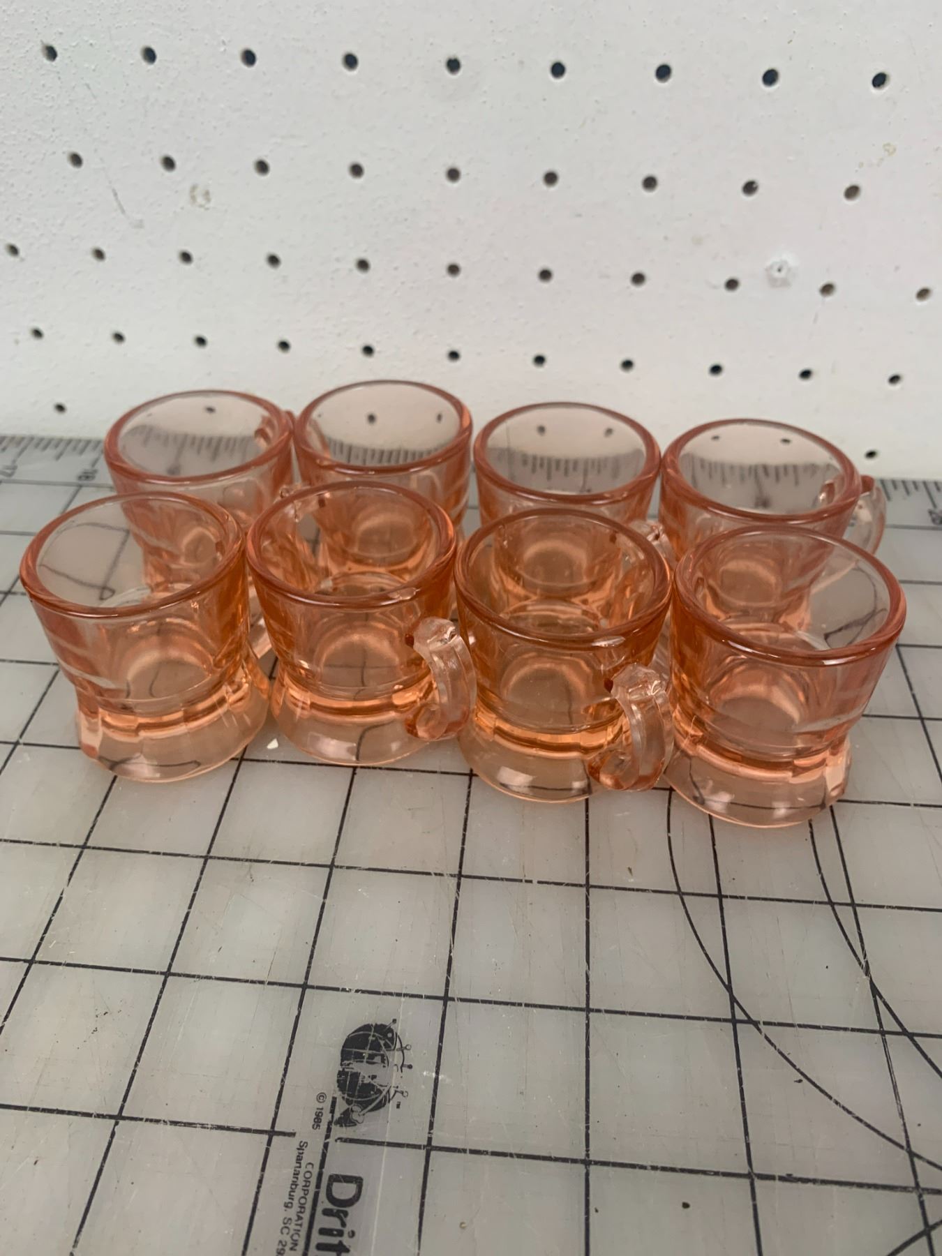 LOT OF 8 PINK DEPRESSION GLASS MINI MUG SHOT GLASSES