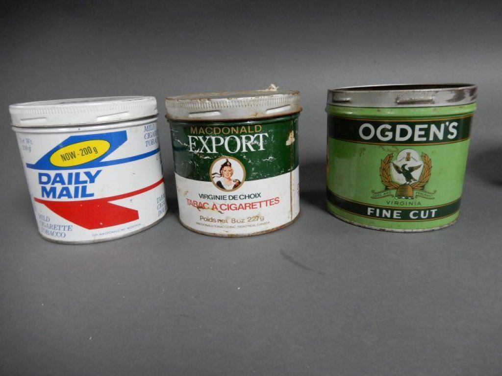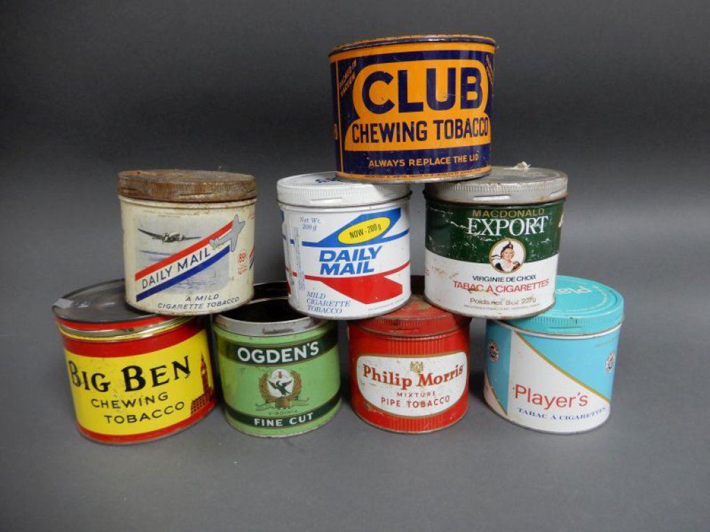 LOT OF 8 TOBACCO TINS PHILLIP MORRIS, CLUB, BIG BEN, DAILY MAIL, EXPORT, ODGEN'S, PLAYER'S LOCATION: GENERAL STORE