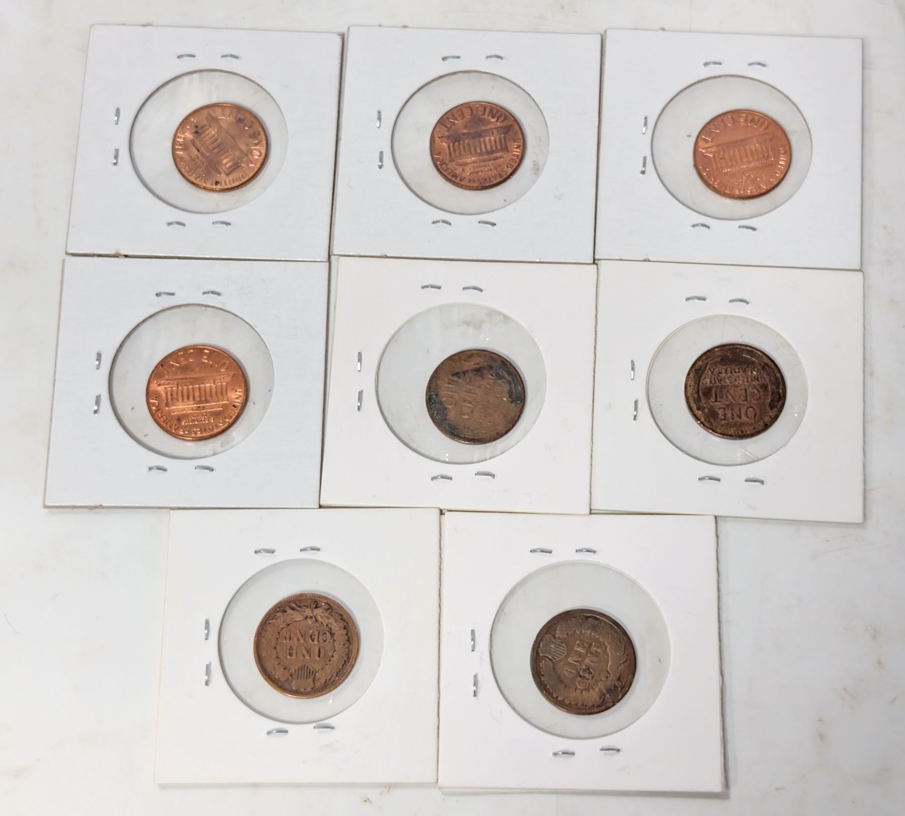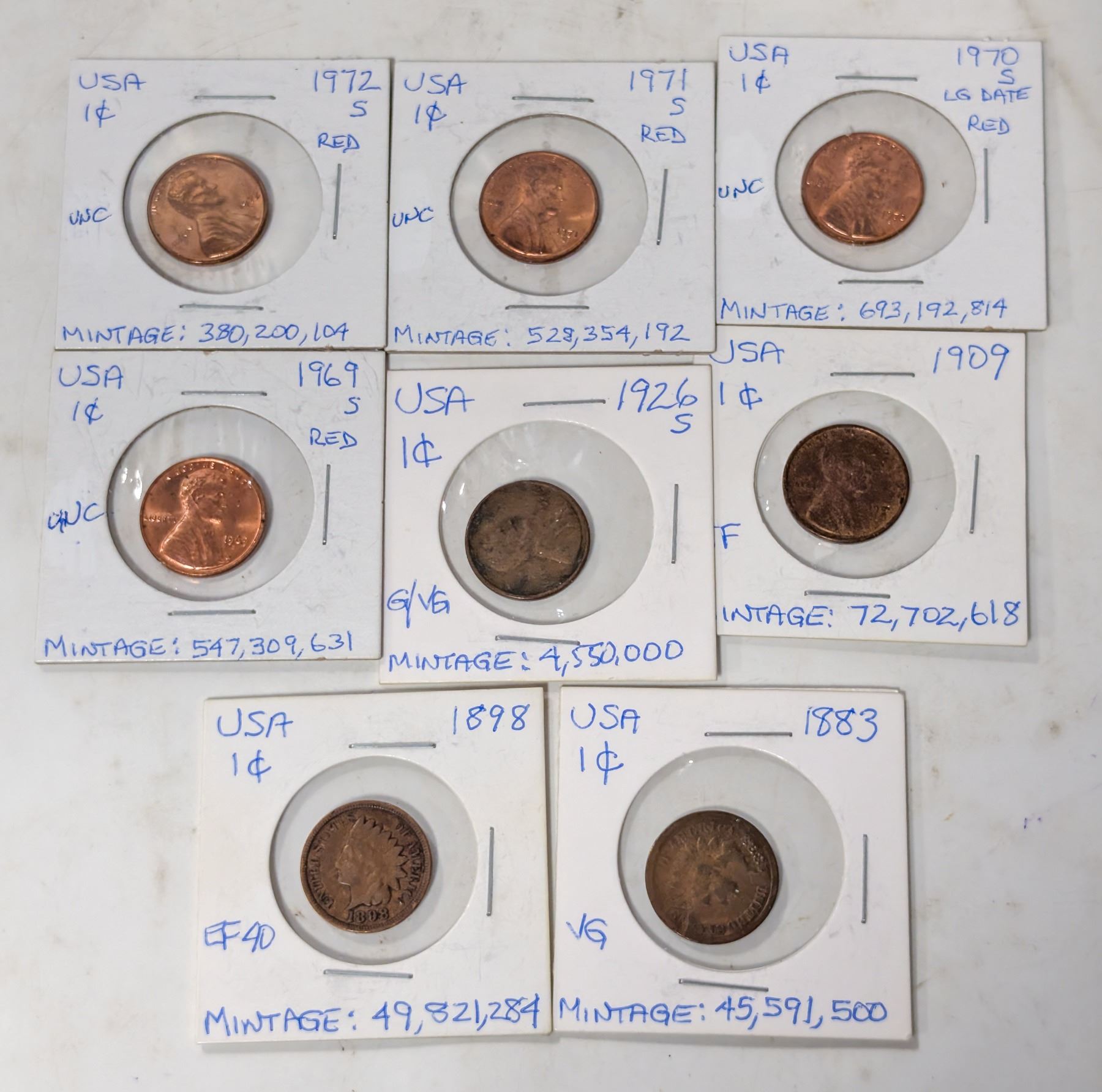 LOT OF 8 USA ONE CENT COINS 1883-1972