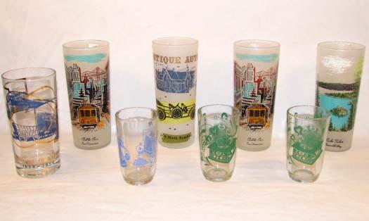 LOT OF 8 VINTAGE GLASSES - Including: San Francisco, Oregon, Antique Autos, Lake Tahoe and more.