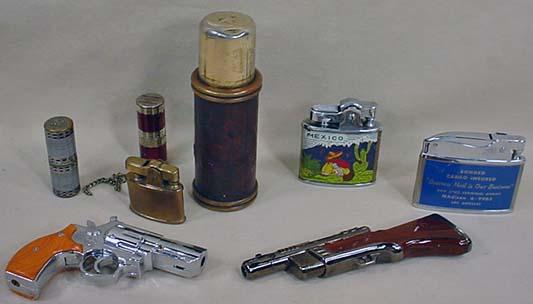 LOT OF 8 VINTAGE LIGHTERS - INCL. ADVERTISING - Incl. Gun lighters, Mexico, United States Fidelity and Guaranty Co., more.