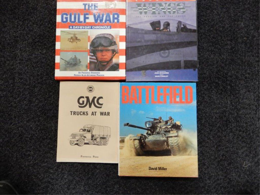 LOT OF 8 WAR THEME BOOKS 7 HARD COVER & GMC TRUCKS AT WAR SOFT COVER BOOK LOCATION: UPPER BACKROOM